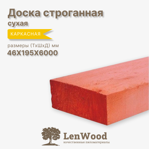 Доска хвойная сухая строганная. Обработка по четырем сторонам с прямоугольным сечением толщиной 46 мм и шириной 195 мм.