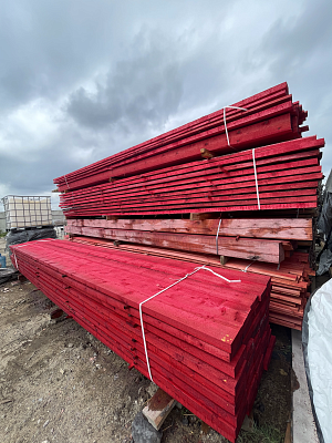 Доска обработана специальным составом (антисептиком), обеспечивающем защиту от насекомых, вредителей и защиту от огня. Пропитку пиломатериалов осуществляем антисептическим веществом с помощью погружения в ванну, потому что такой способ обеспечивает наиболее хорошее качество пропитки материала, чем опрыскивание.