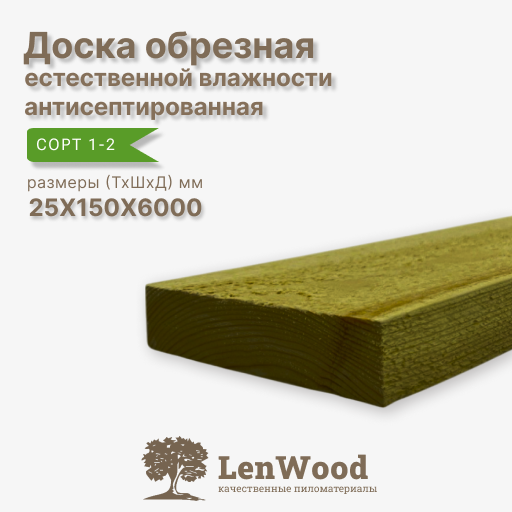 Доска хвойная обрезная. Простой обрезной пиломатериал прямоугольного сечения со сторонами 25 и 150 мм. Допускается небольшая погрешность по размерам и форме доски.