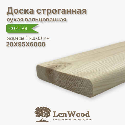 Доска хвойная сухая, строганная со всех сторон и завальцованными краями. Доска калиброванная, с сечением ровно 20 на 95 мм.